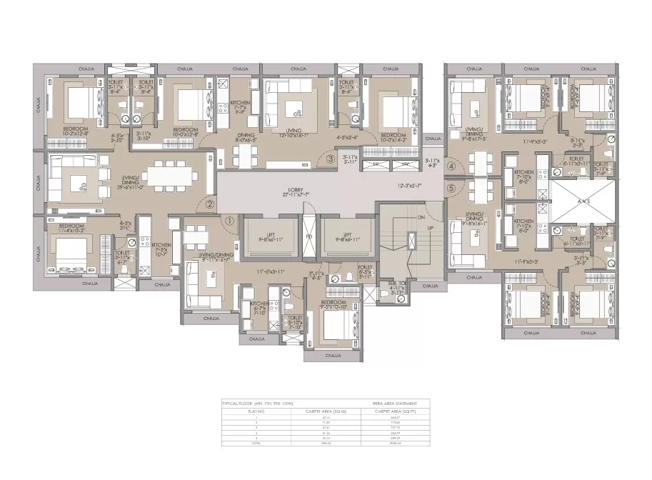 Carpet Area: 1BHK - 465 Sq Ft, 2BHK Small - 656 Sq Ft, 2BHK Large - 729 & 774 Sq Ft
