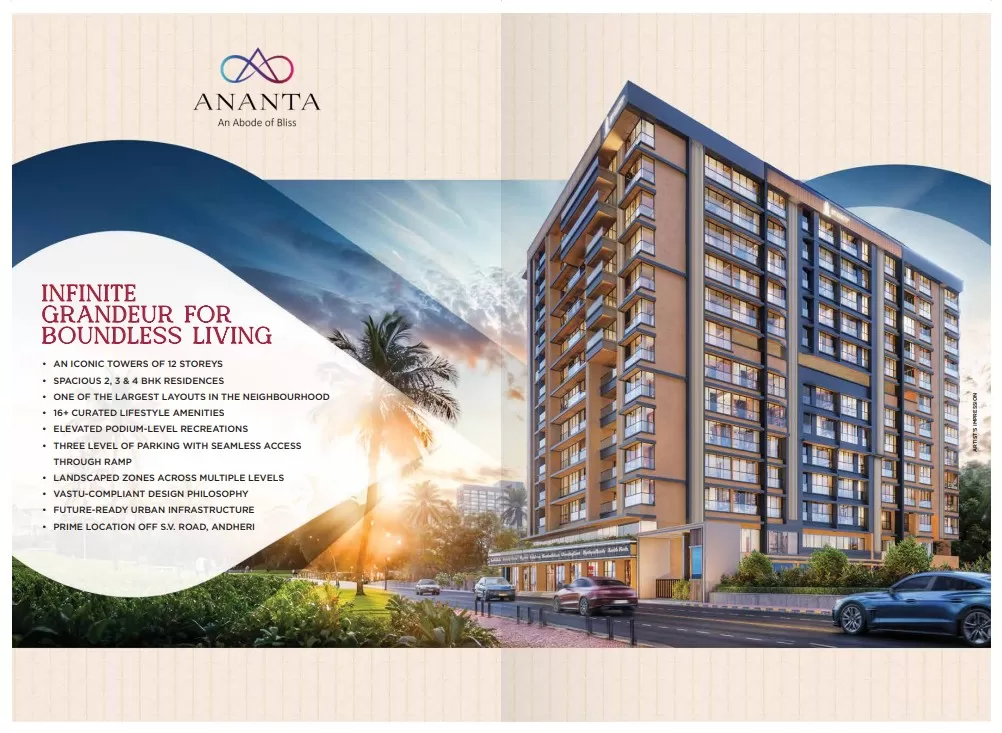 Ananta By Jet Realty is the brand new residential complex coming at SV Road near Andheri Railway Station with huge free hold land parcel and ultra premium modern amenities with excellent connectivity. Ananta By Jet Realty offering specious 2BHK, 3BHK and 4BHK apartments with 16+ amenities. Jet Ananta tucked just off S.V road and minutes from Andheri Station, Ananta sits at the heart of a prestigious neighborhood. from the metro to the highway, from schools to shopping, this is prime connectivity at its finest.