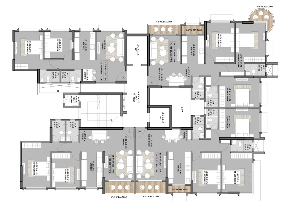 Atharv Brindavan features meticulously crafted 2BHK, 2.5BHK, 3BHK and spacious 4BHK Balcony apartments, each boasting large balconies and more than 25 ultra-modern amenities. These residences are designed to provide the perfect blend of comfort and elegance, making Atharv Brindavan in Andheri an ideal choice for discerning homebuyers.
