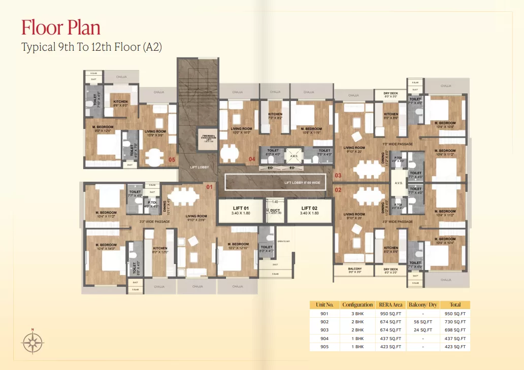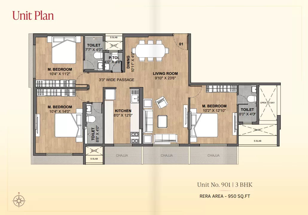 3 BHK – 950 sq.ft. – Starting from ₹2.66 Cr+