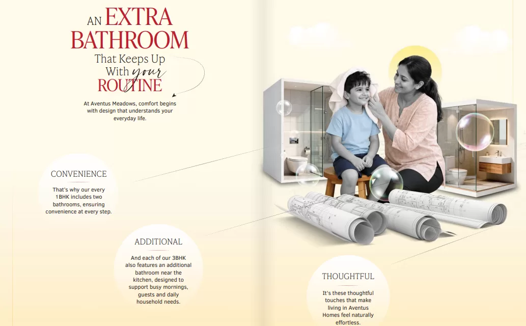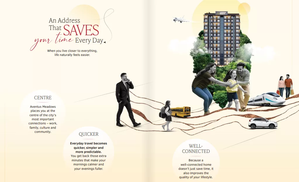 Aventus Meadows offering very well crafted and premium 1BHK, 2BHK & 3BHK homes in a prime location with excellent connectivity and modern day amenities.