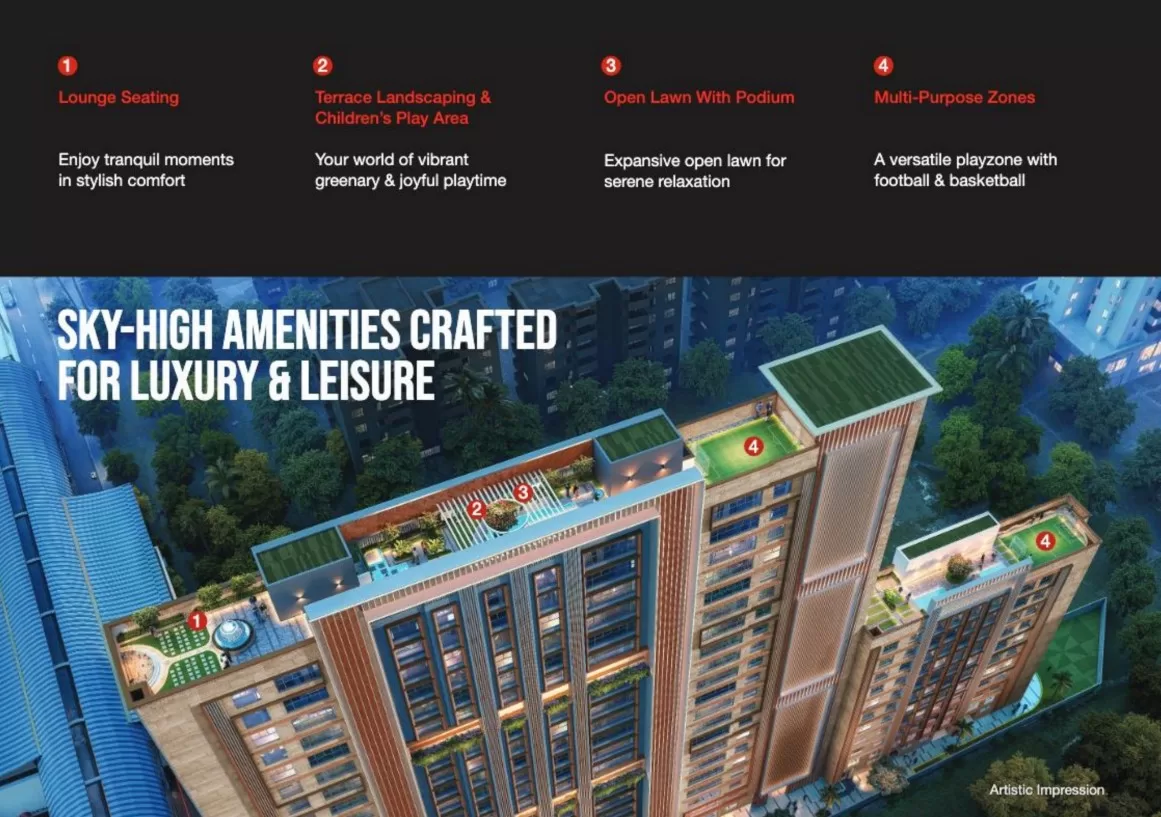 The project features spacious 2.5BHK & 3BHK residences, perfect for families or individuals seeking luxurious living. With 2 select apartments per floor, residents can enjoy a sense of exclusivity and privacy.