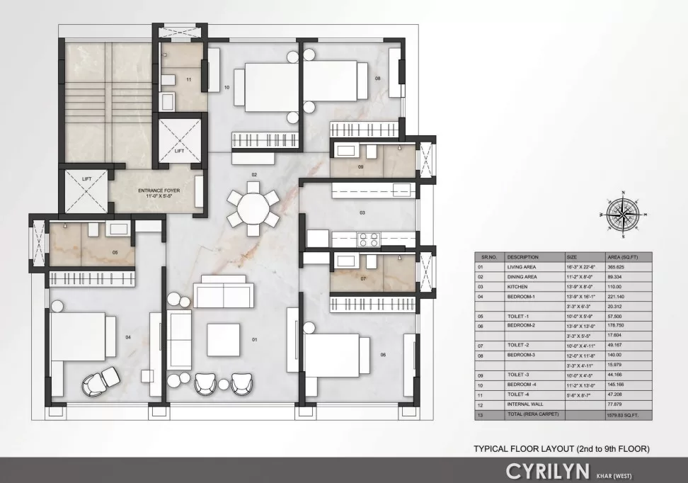 – Large Carpet Area Of 1,583 Sq. Ft.