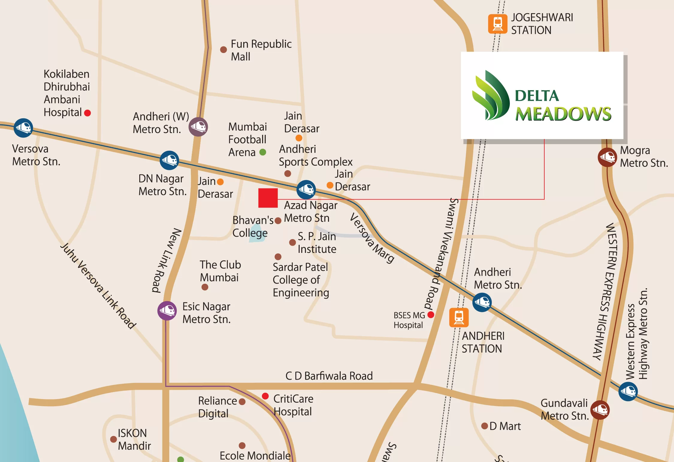 Delta Realty proudly presenting Delta Meadows at main J.P. Road, Azad Nagar in Andheri WestDelta Meadows is a very well-planned and smartly crafted residential project with a focus on optimal space utilization. Each amenity is thoughtfully designed to be both practical and aesthetically pleasing. High-quality branded fittings, fixtures, and finishes enhance the living spaces. State-of-the-art security features ensure safety and peace of mind.