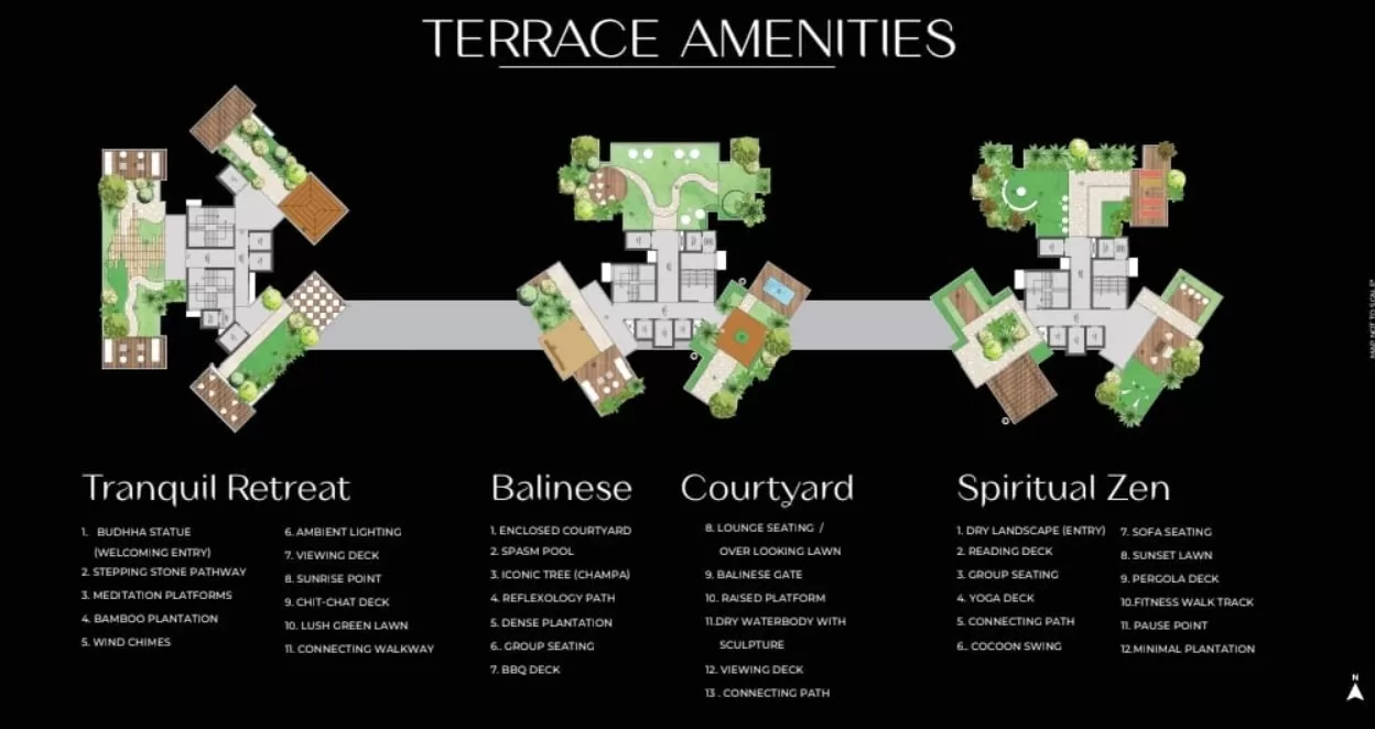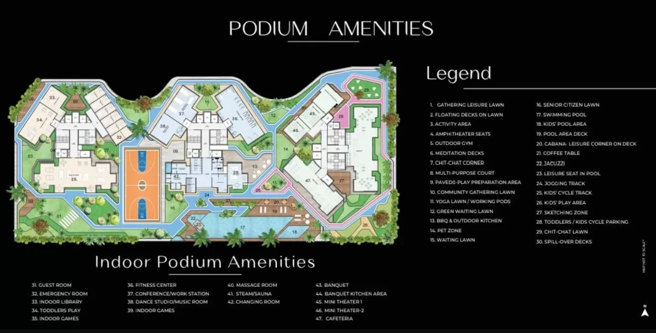 – Modern Amenities: 35+ lifestyle amenities, including elevated jogging tracks, turf parks, games area, playground, Ganesh Temple, mini theater, fitness center, and indoor game areas