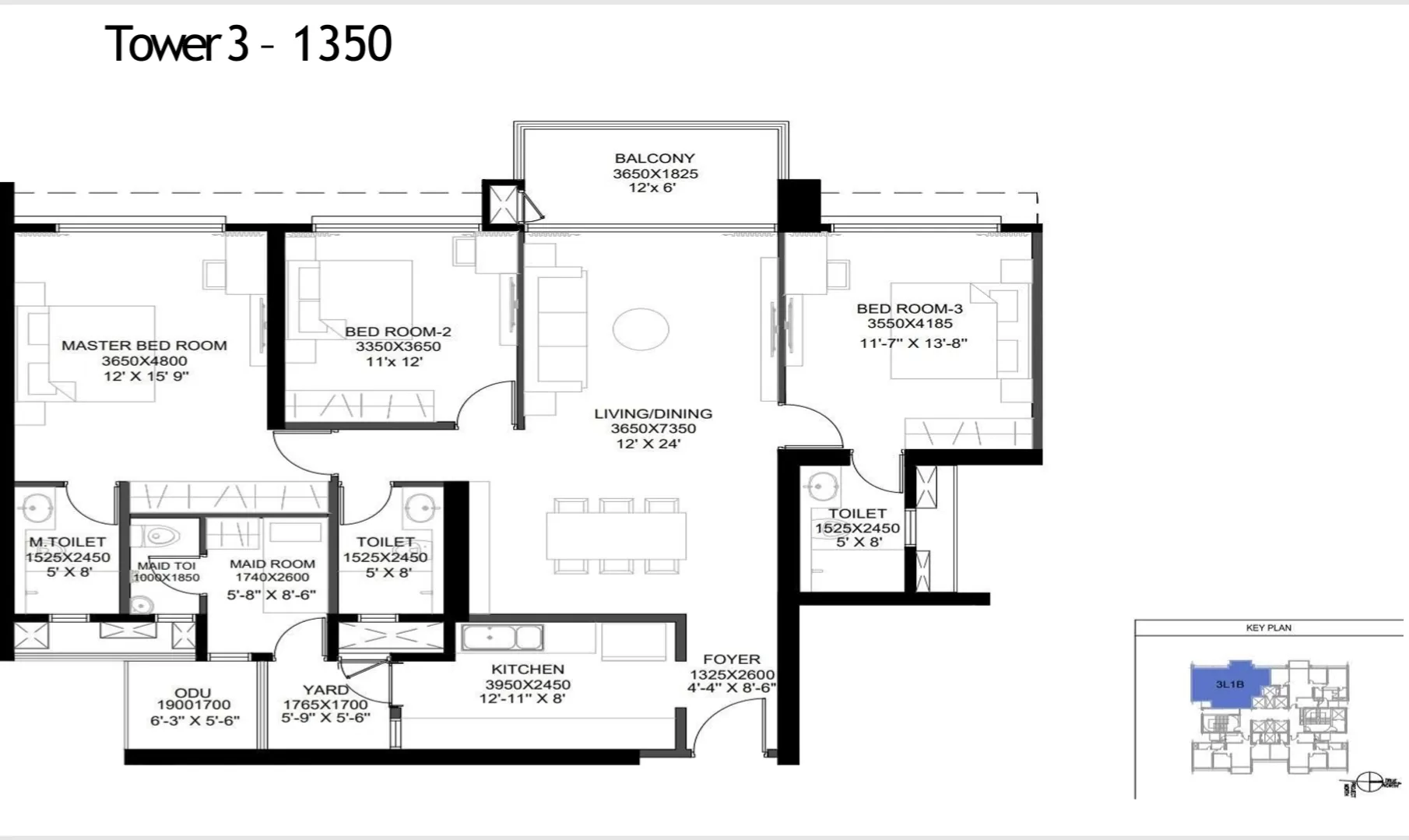 – Tower 3: 4 units per floor (2 of 1150 sq ft each facing East and city, 2 of 1350 sq ft each facing West and amenities)