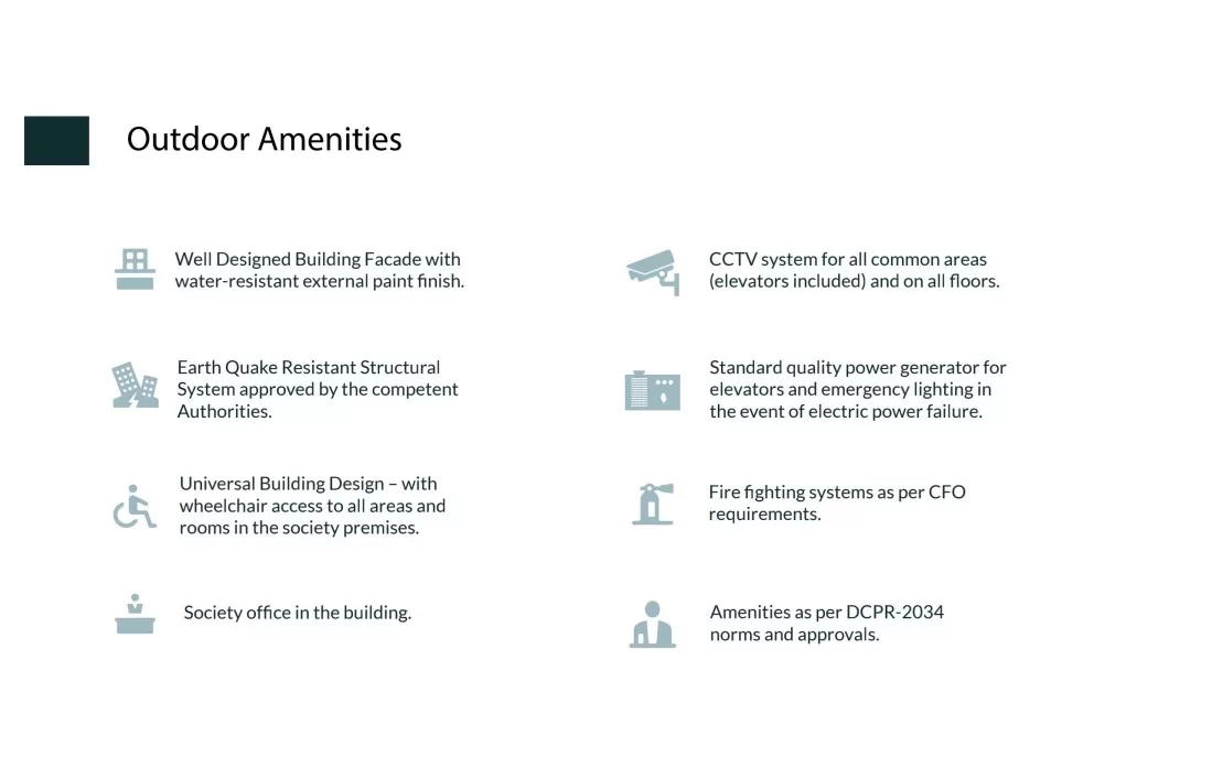 Eirene Heights Tower offering very well crafted 2BHK, 3BHK and 4.5BHK apartments with sufficient amount of parking, essential amenities, terrace garden and all the apartments having the exceptional view of the sea and city’s skyline. The façade of the building is kept simple yet interesting with the rhythmic play of particular pattern repeated at certain intervals, making it look neat and exquisite.