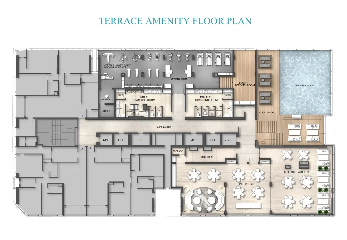 – Expansive 3BHK and 4BHK residences, each graced with lavish private decks