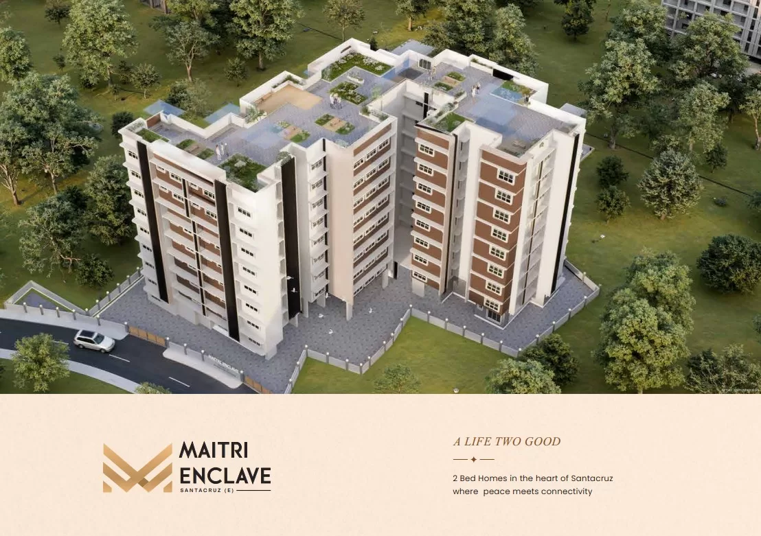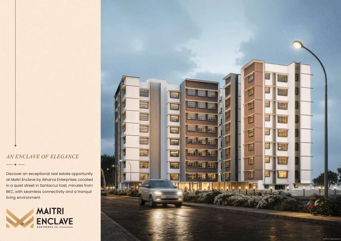 Maitri Enclave by Atharva Enterprises. offering smartly designed 1BHK, 2BHK and Jodi apartments, with Strategically located minutes away from the heart of the main BKC district, offering seamless connectivity, modern amenities, and a tranquil living environment, this exclusive enclave lets you experience the perfect work-life balance without the premium price tag