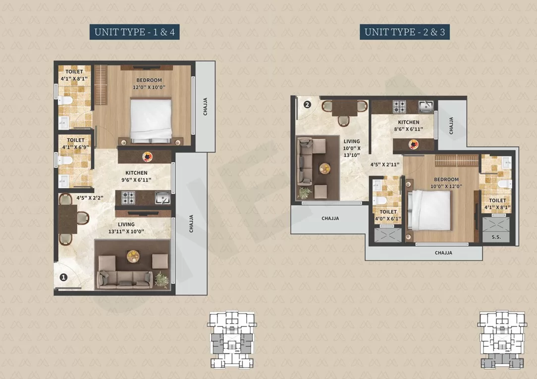 – 2.5 BHK – 810 & 820 Sq. Ft