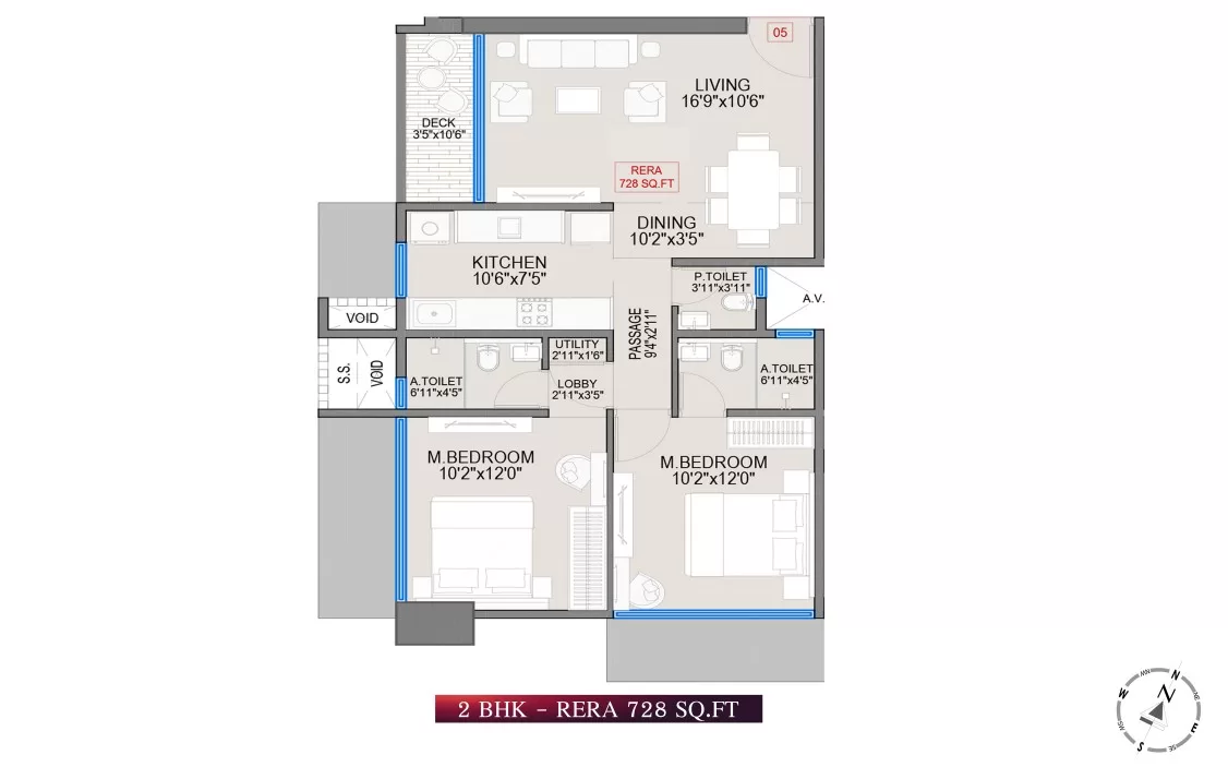 Carpet Area: 1BHK - 446 Sq Ft, 2BHK - 728 & 736 Sq Ft, 3BHK - 1210 Sq Ft