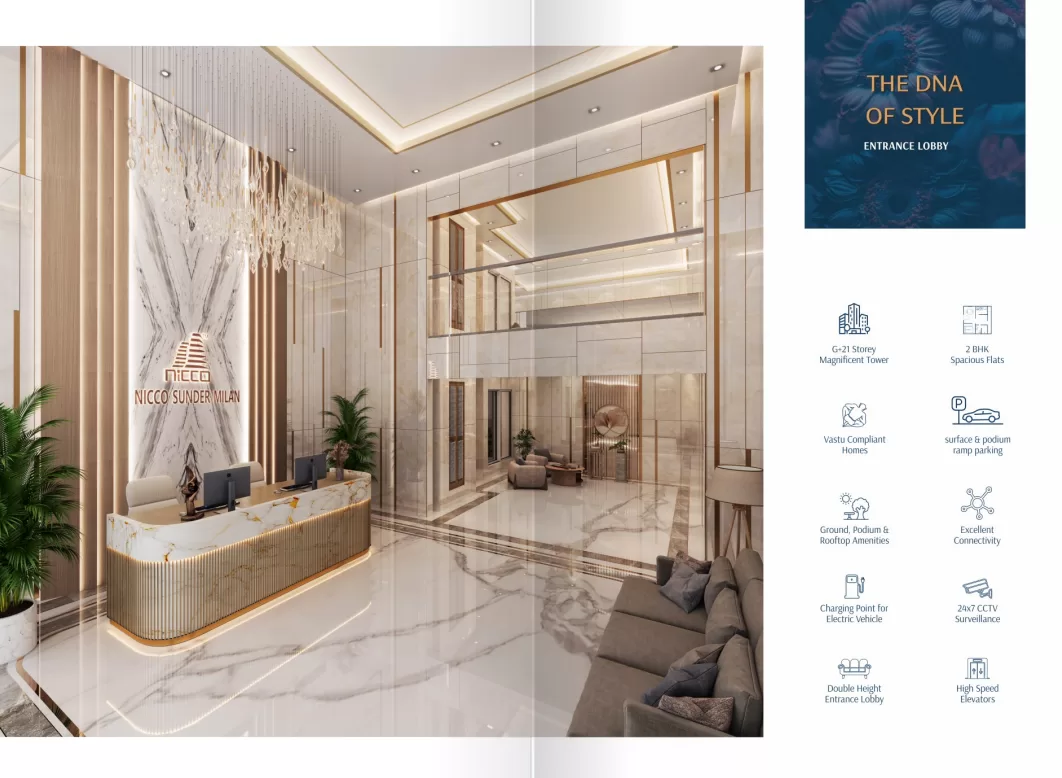 NICCO Sunder Milan is the brand new launch in Malad West in Sunder Nagar, one of the finest locality in Malad West. NICCO Sunder Milan offering exclusive and very well planned 2BHK and Jodi apartments with ultra modern 30+ amenities with excellent connectivity and surrounding. Nicco Sunder Milan is a thoughtfully designed residential development located in the prime neighborhood of Sunder Nagar, Malad West. Developed by New India Construction Company, the project reflects a blend of modern architecture, elegant design, and lifestyle-focused living. The project stands out with its stylish elevation, grand entrance lobby, and a wide range of curated lifestyle amenities spread across ground, podium, and rooftop levels. Designed to provide a holistic living experience, Nicco Sunder Milan brings together comfort, convenience, and luxury under one roof.