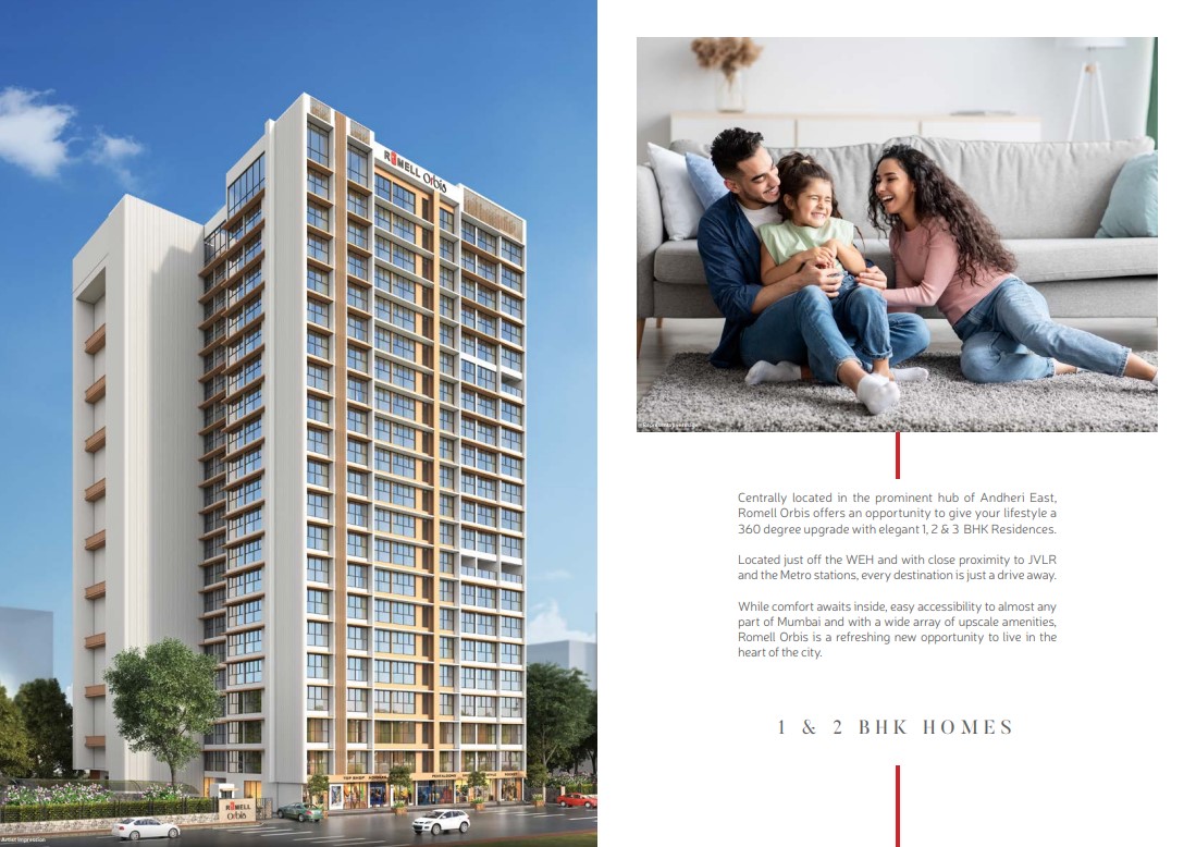 Romell Orbis is brand new ultra luxurious residential project coming in the center of Andheri East location near Shere Punjab area. Project Romell Orbis offering very well design 1BHK, 2BHK and 3BHK smart home with all ultra-modern amenities more than 25+. Project located in very peaceful locality witch excellent connectivity of Wester Express Highway, JVLR, Andheri Kurla Road, Upcoming Metro Station and Andheri Railway Station. Project is very well connected to Schools, Colleges, Market, Super Market, Temples, Guru Dwara, Gymkhana, Public Garden, Hospital and many more.