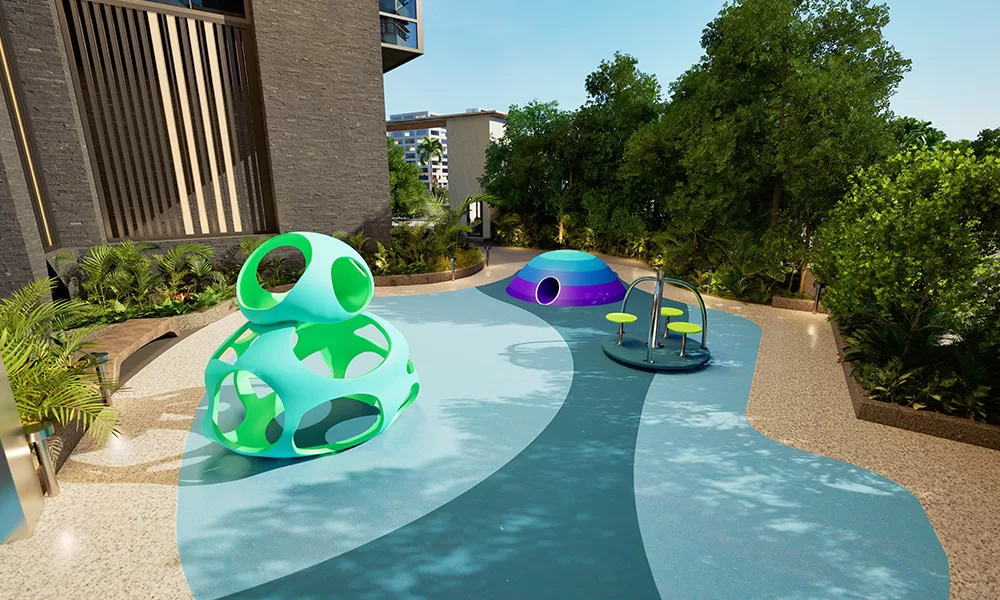 – Interior Amenities: Jogging track, kid’s play area, intercom facility, solid waste management