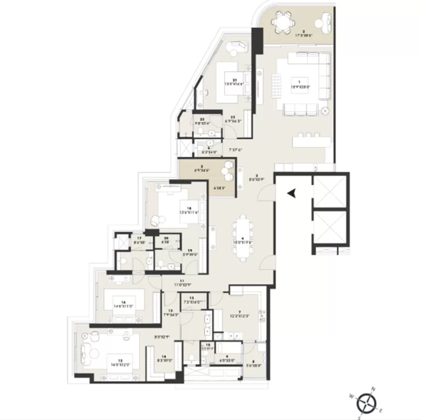 Rustomjee Cliff Tower boasts a curated collection of premium residences, featuring state-of-the-art and most premium 4BHK and 5BHK abodes. Each residence is meticulously crafted to cater to those who appreciate the finer things in life, including: