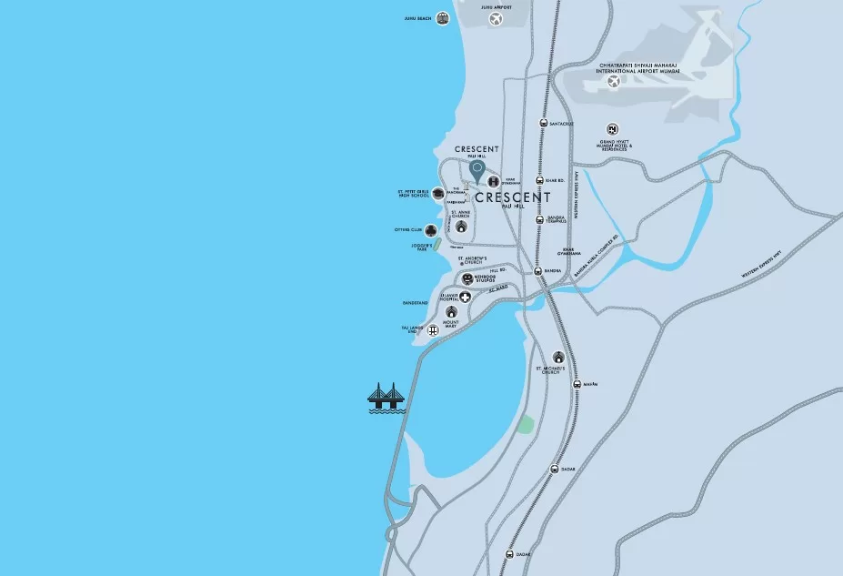 Situated within the quietand finest locality of the city’s most iconic neighbourhood Pali Hill, Bandra West, Mumbai City. find every moment is an invitation to indulge. To bask in the neighbourhood’s lively charm, turn neighbours into lifelong friends at soirees or rejuvenate in a blue oasis. Rustomjee Crescent Transforms living into an extraordinary experience. Rustomjee Crescent offering extra large and lavish 3BHK and 4BHK Residences in the heart of Bandra West with excellent neighbourhood of Pali Hill with 4Basements + Ground + 18 storey and two Wings.