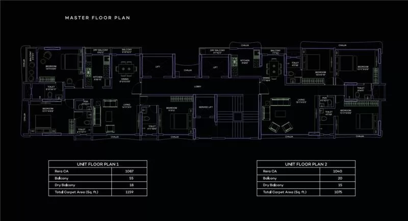 Carpet Area: 3BHK - 1075 & 1159 Sq Ft