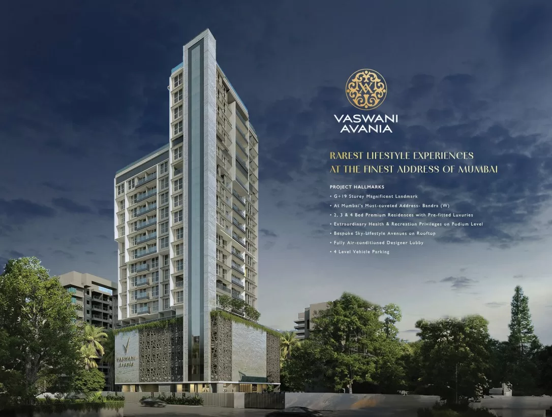 Vaswani Avania is a luxurious residential project located in Bandra West, Mumbai, offering stunning sea views, modern amenities, and premium living spaces. Vaswani Avania is a harmonious blend of modern design, thoughtful amenities, and lush landscapes. Designed for those who seek a balanced lifestyle, Avania offers a serene haven away from the city’s hustle while keeping you close to all conveniences. Vaswani Avania is an exclusive collection of limited-edition signature residences with 2BHK, 3BHK, and 4BHK on the prestigious 30th Road in Bandra West, Mumbai.
